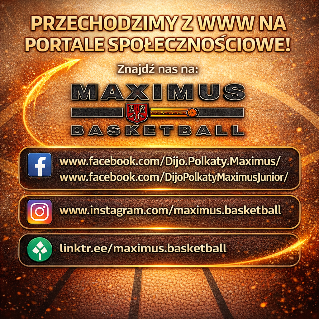 Aby być na bieżąco z wydarzeniami, treningami i aktualnościami Maximus Basketball, zapraszamy na nasze portale społecznościowe. To tam publikujemy najświeższe informacje i relacje z życia klubu. Dołącz do nas na Facebooku, Instagramie oraz Linktree!